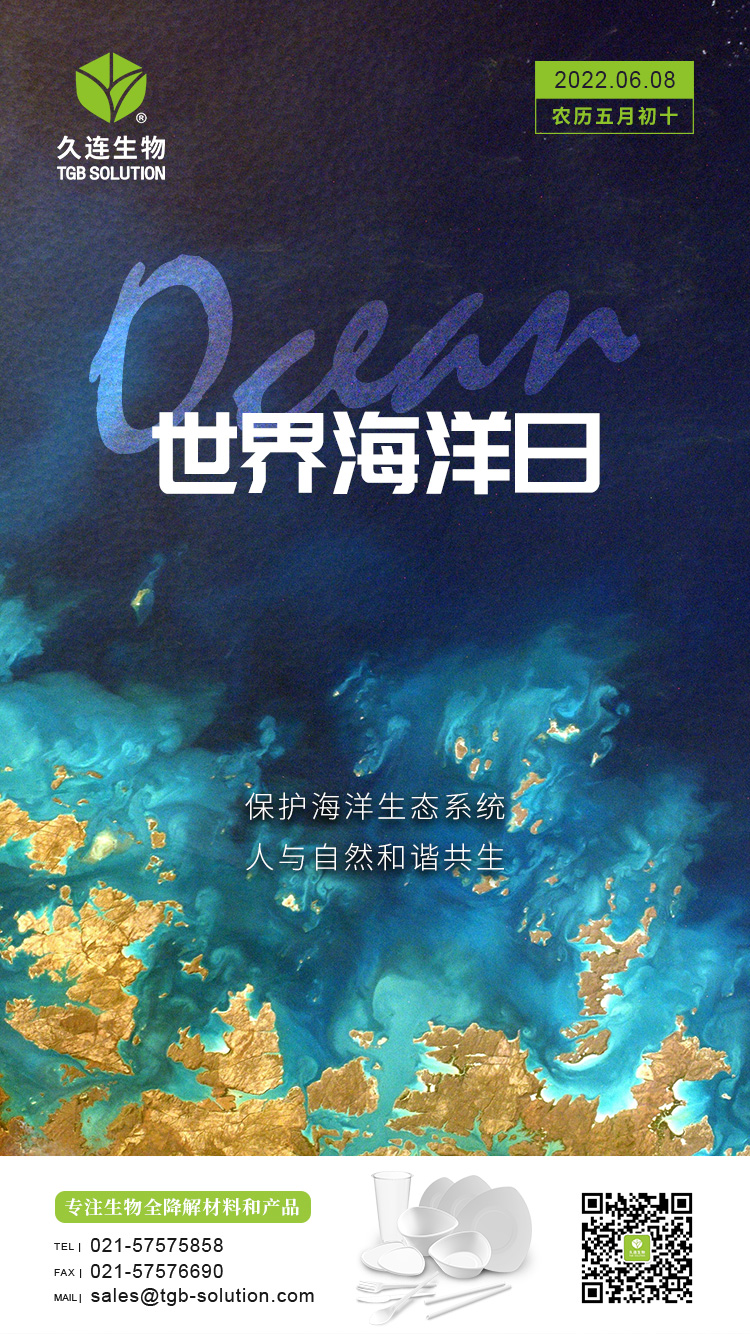 海洋,是生命的摇篮、资源的宝库 是人类赖以生存的蓝色家园 随着人类社会的不断发展 海洋生态环境问题日益突出 微塑料(粒径小于5mm的塑料) 被称为海洋中的“PM2.5” 由塑料垃圾老化降解得到 在环境中会成为其他污染物或微生物载体 目前在大量海洋生物 甚至人体内均发现微塑料存在 微塑料在生物体内会引发各系统疾病 海洋塑料污染已成为与全球气候变化 臭氧耗竭和海洋酸化并重的全球性环境问题 人类生存得益于海洋 人类发展必依靠海洋 保护海洋环境,你我皆有责 久连生物在此呼吁大家 让我们一起做海洋的守护者 像对待生命一样关爱海洋 减少几百年才能降解的塑料制品的使用 转用全生物降解产品 用责任与担当,守护这片深蓝